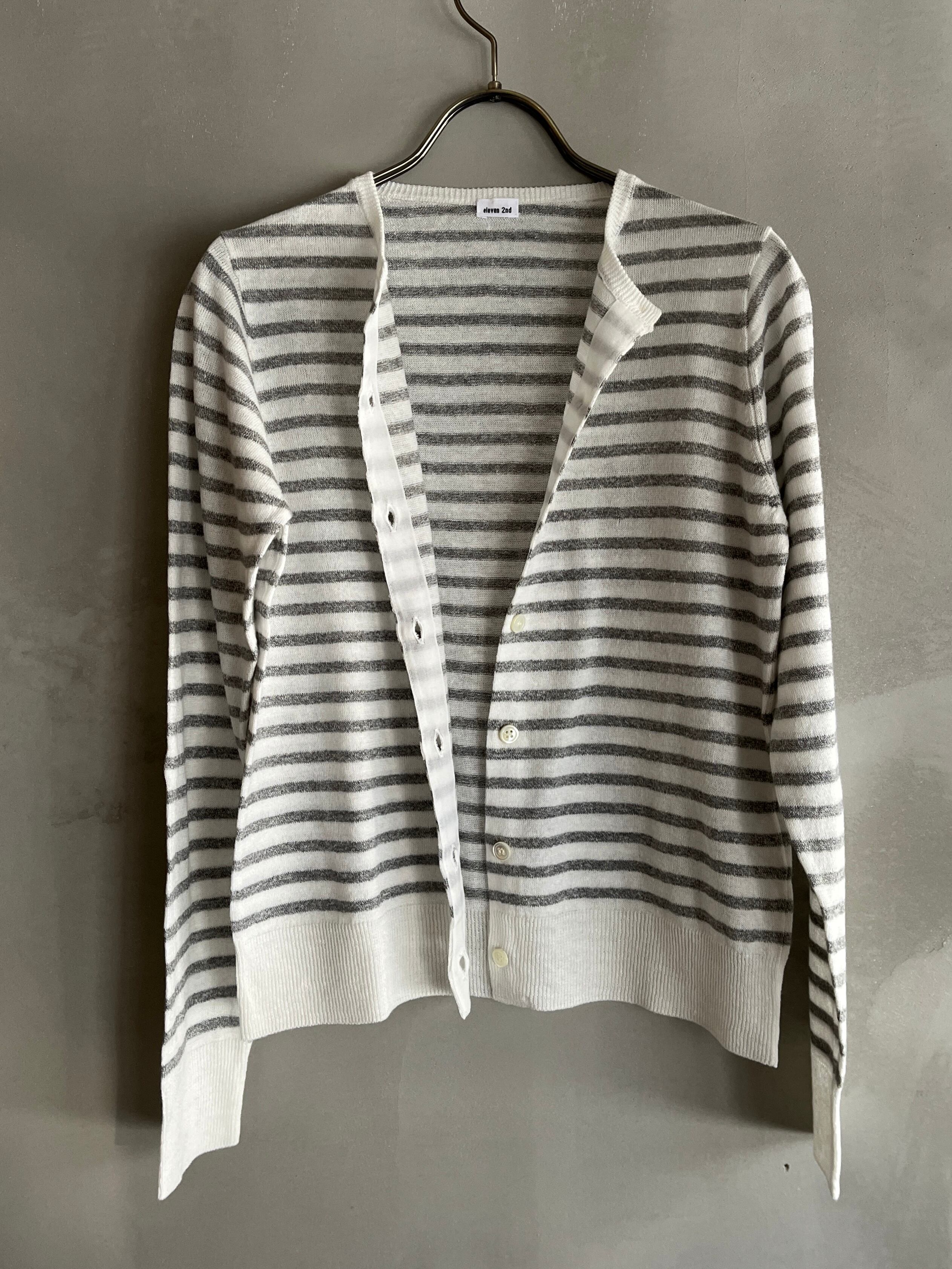 eleven 2nd|リネン&コットン カーディガン|ホワイト&グレー