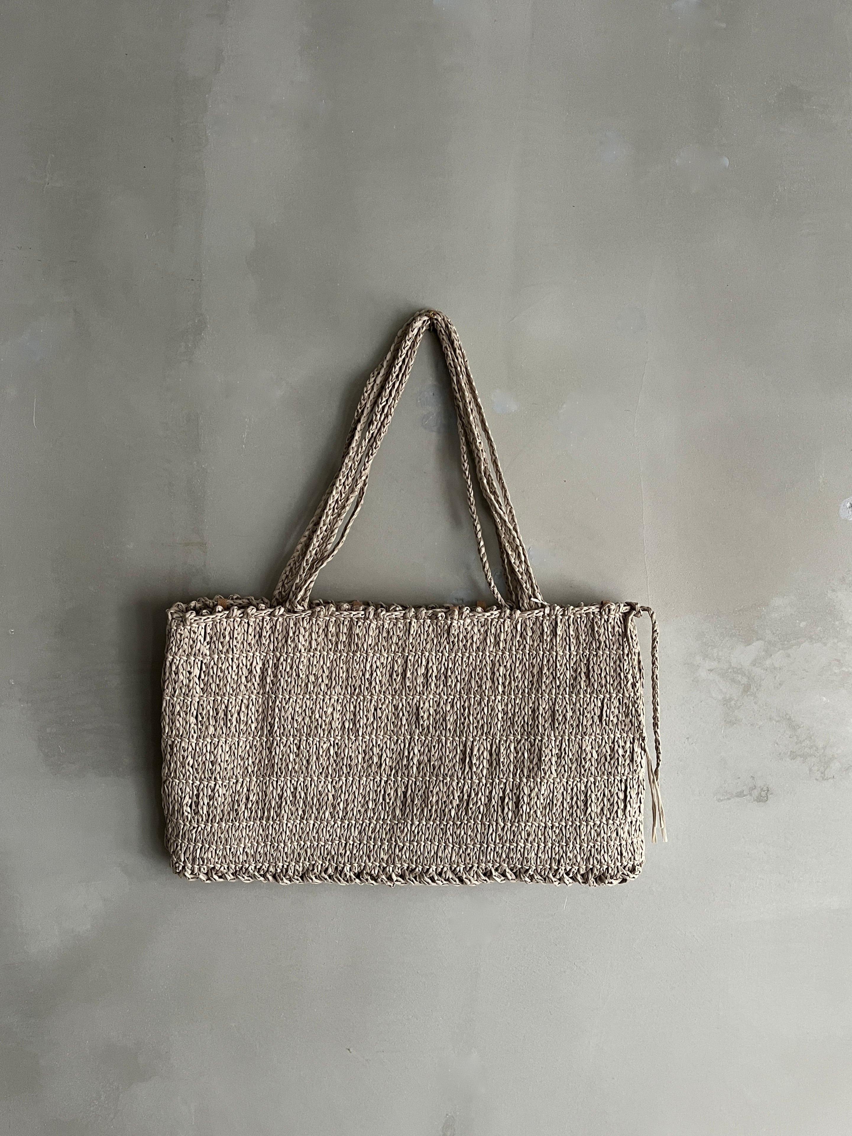 柔らかな陰影、独特な編み目模様が特徴で、一目惚れしたprinciple of overprintの縄文編みのバッグ。
