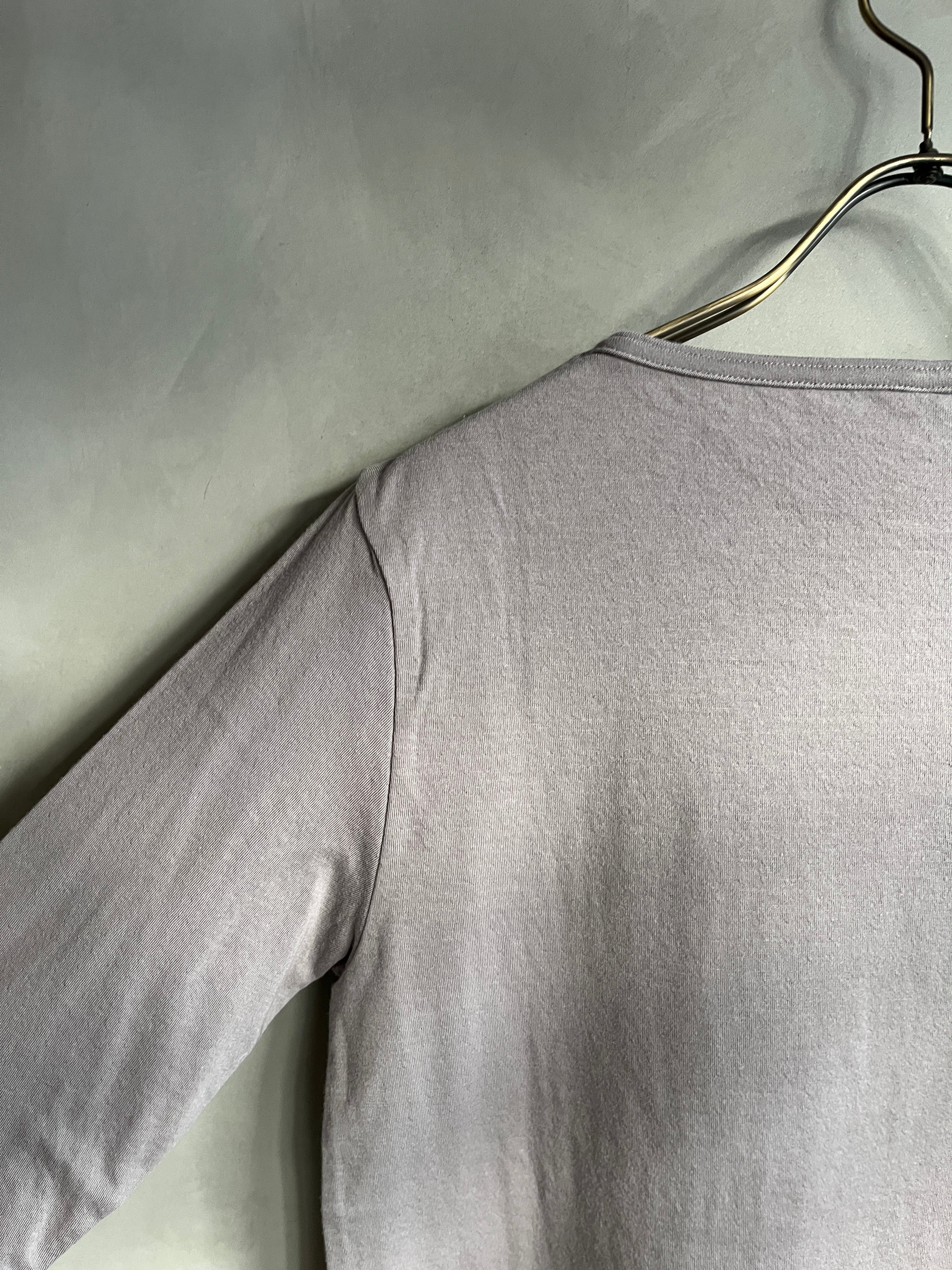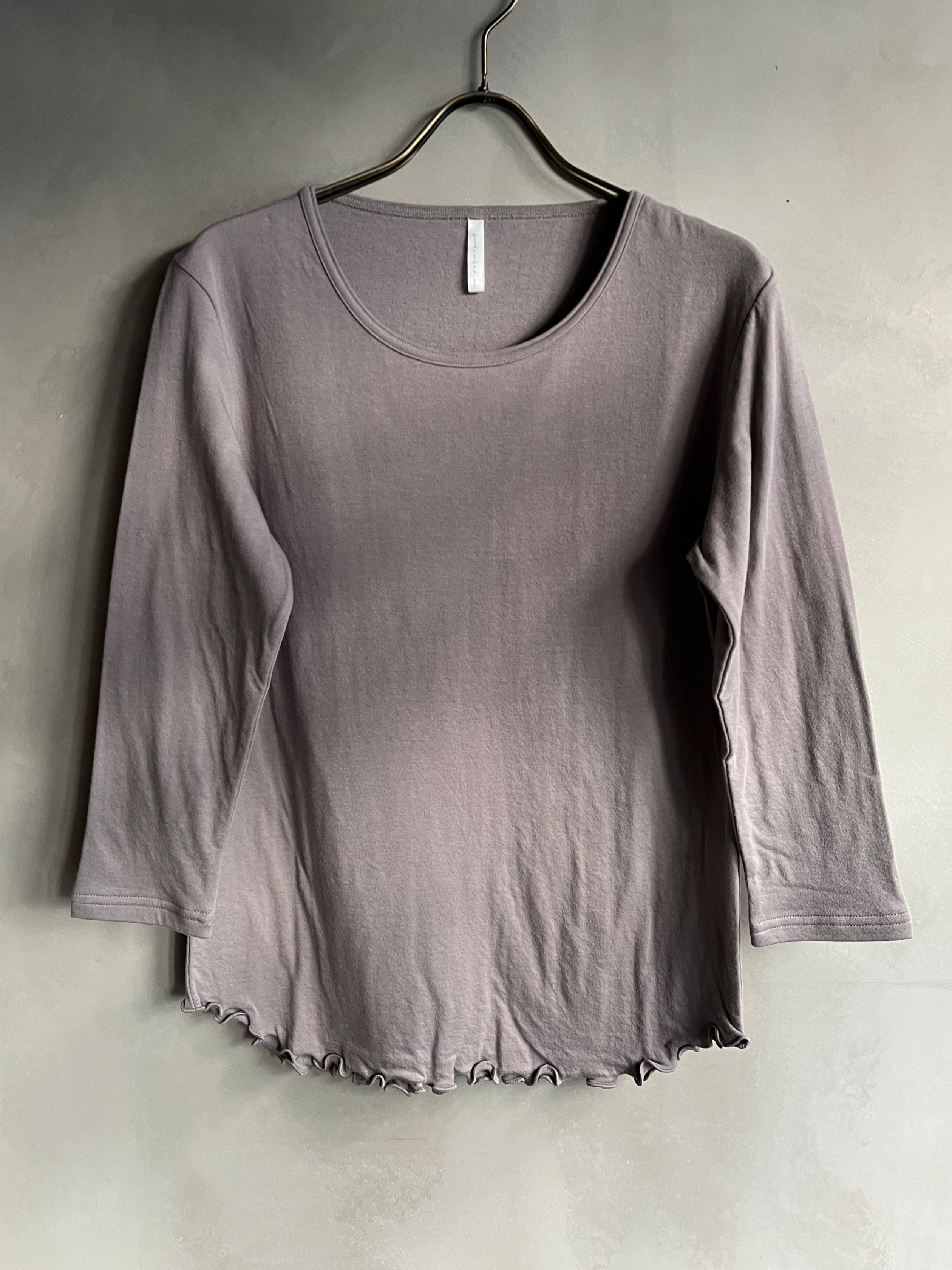 伸縮性に優れ、特に腕周りを広めにしているので、M-Lサイズの方にもキツさを感じずお使い頂けます。袖丈は8部袖。裾はめくれ上がらないように丸くカーブを作っています。