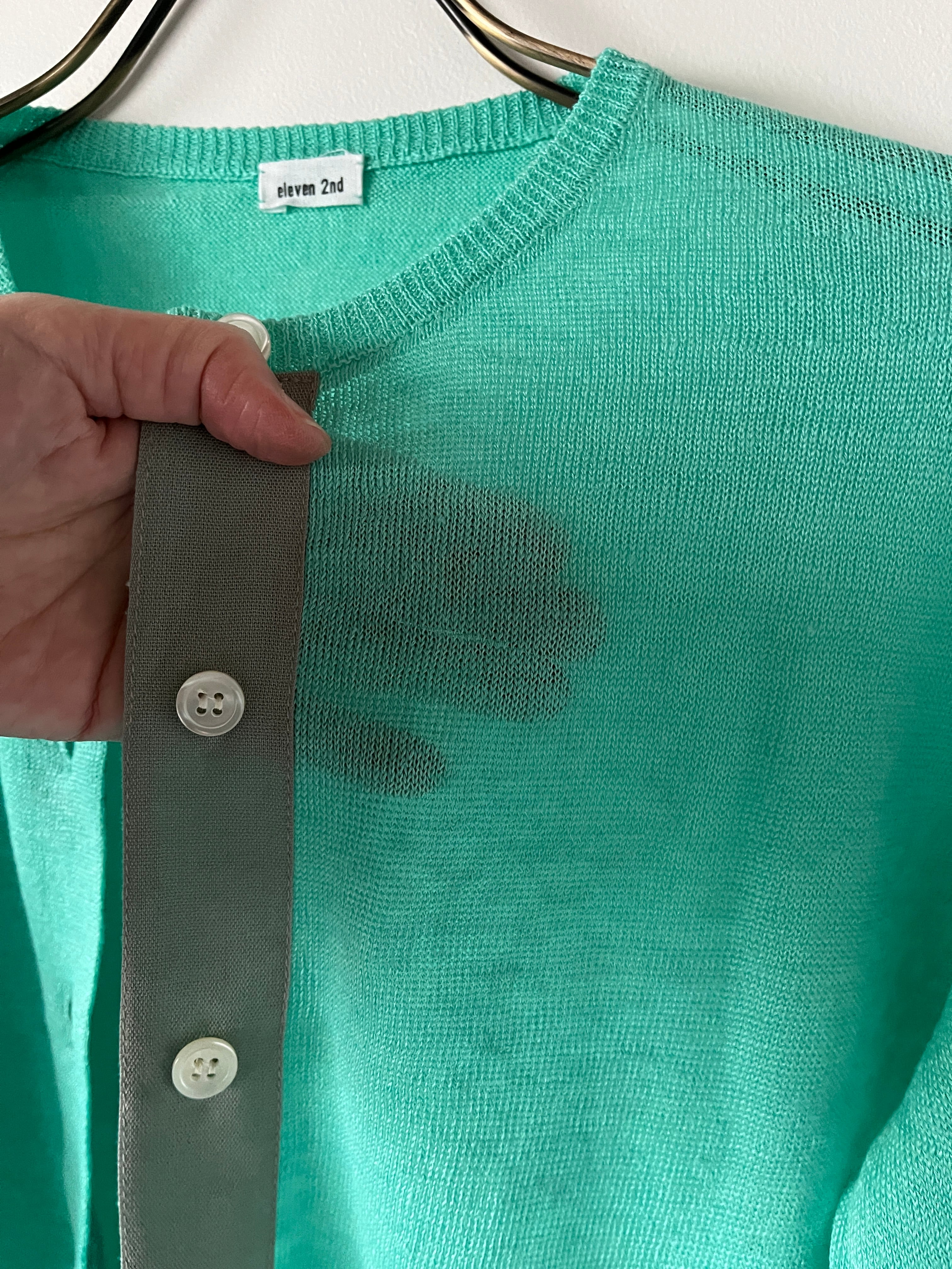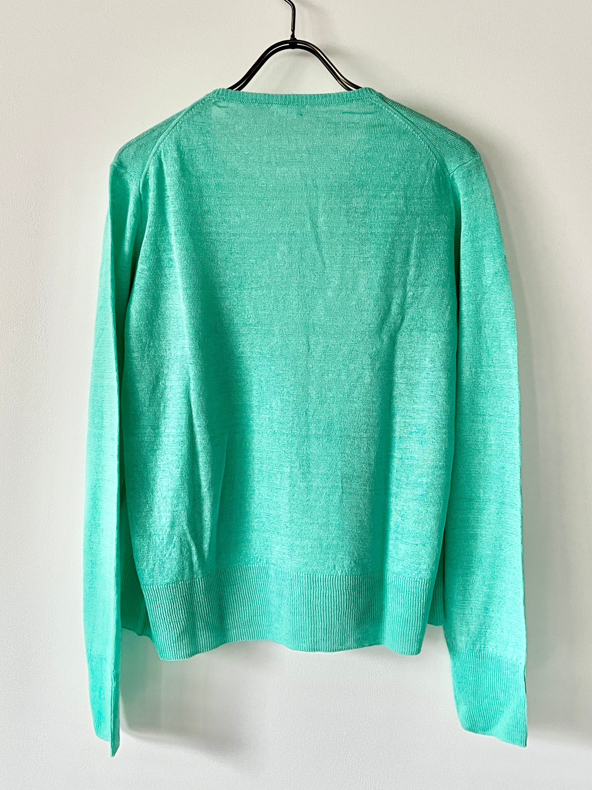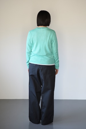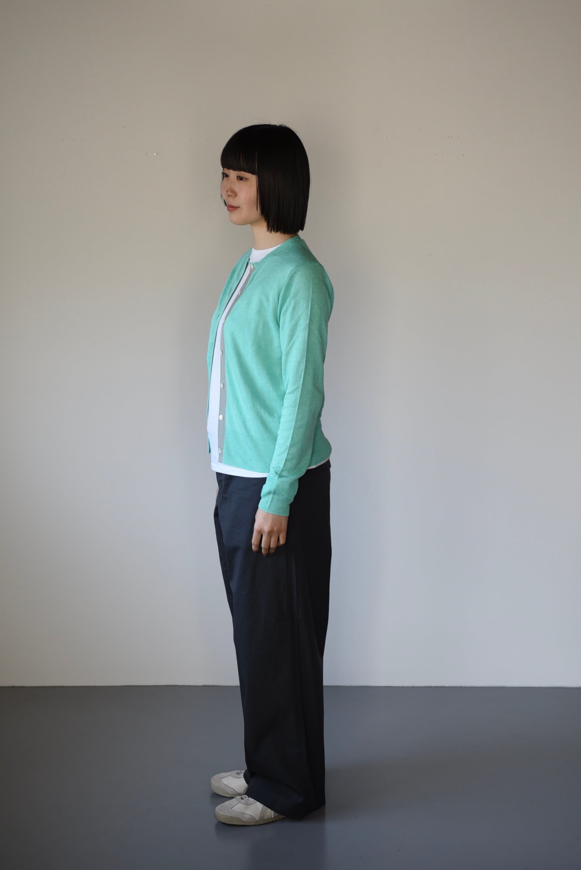 ミントグリーン。チョコチップミントのアイスクリームを思わせるポップな色。ホフホワイトや生成り、カーキなどにも合わせて楽しめます(着用写真はeleven 2ndのスレート)。