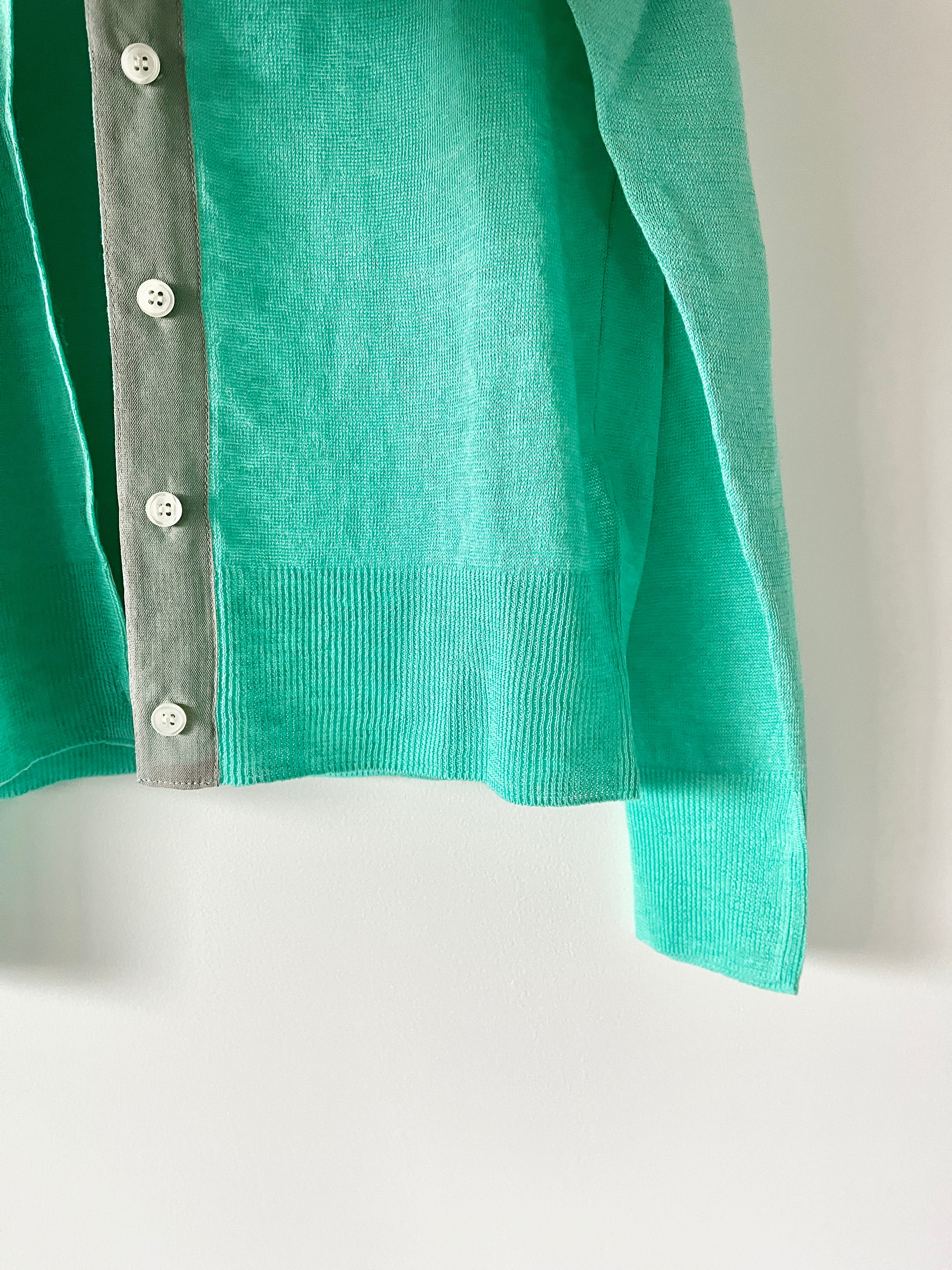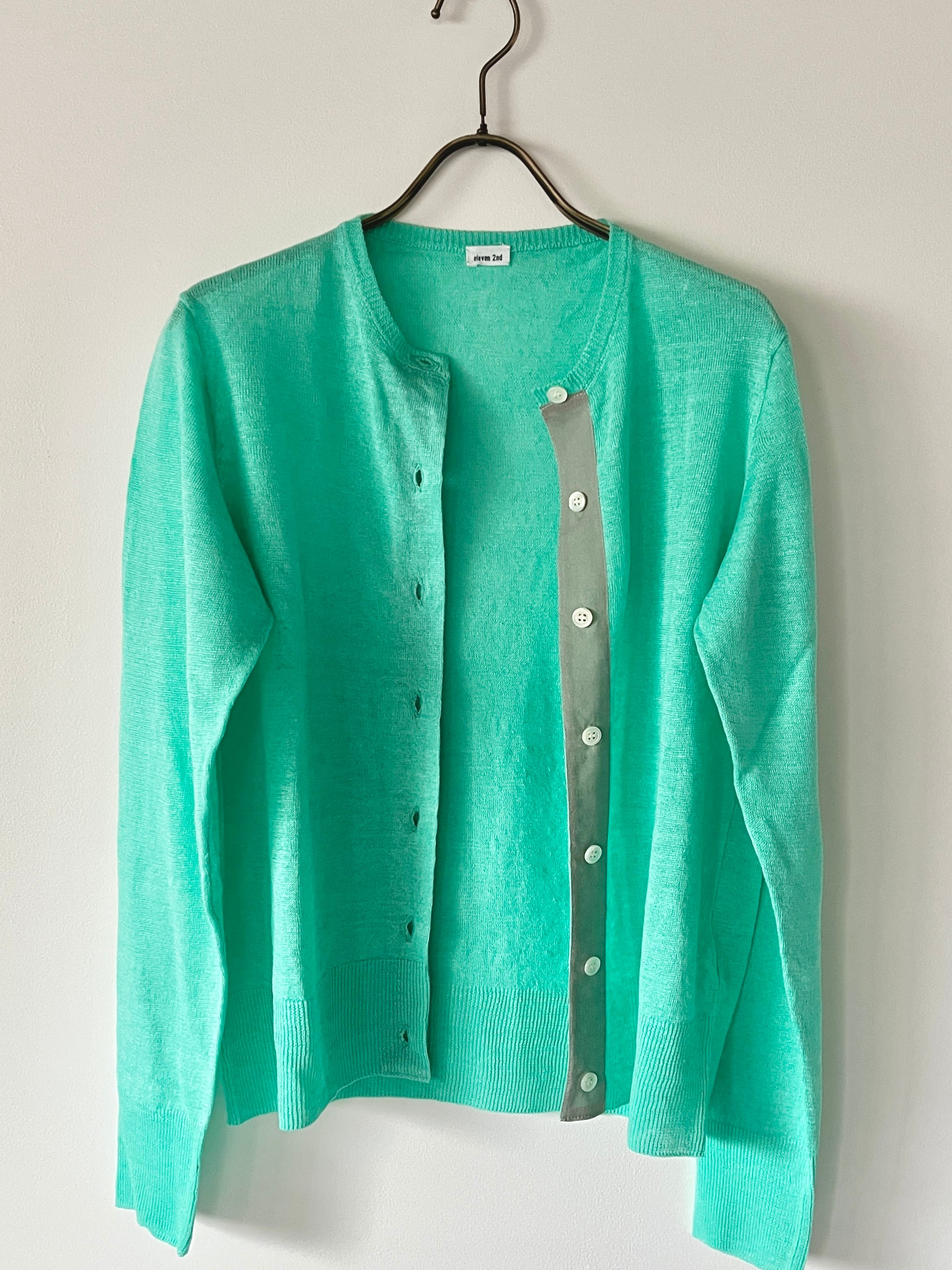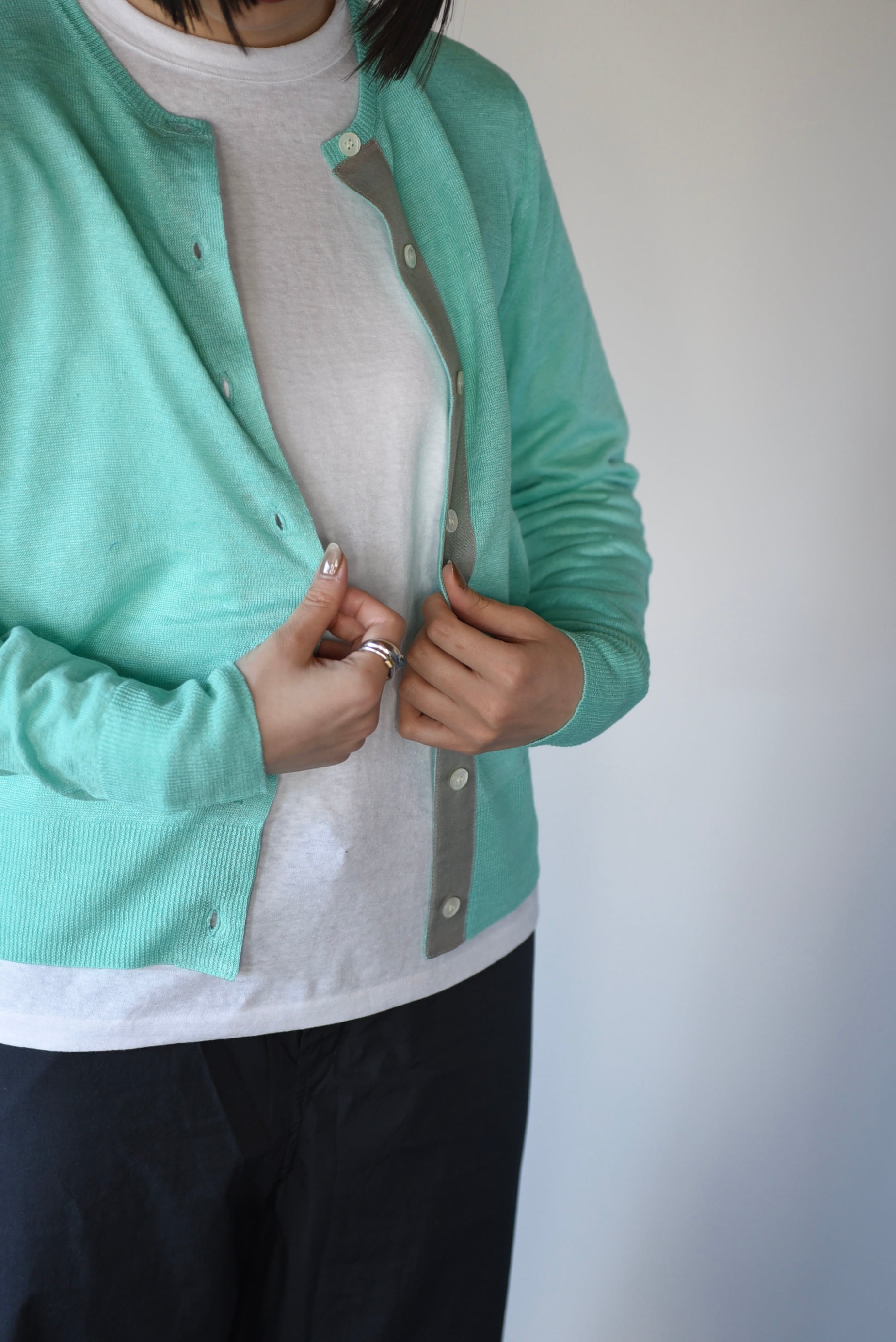 下が透けるのがまた一味違ったおしゃれが楽しめます。ボーダー柄をチラ見せするのも素敵です。年々長引くサマーシーズン、最近は1年を通してリネンを着ている方が多くなりました。アウターに響かない薄手のカーディガンは秋冬の重ね着にも重宝すると思います。