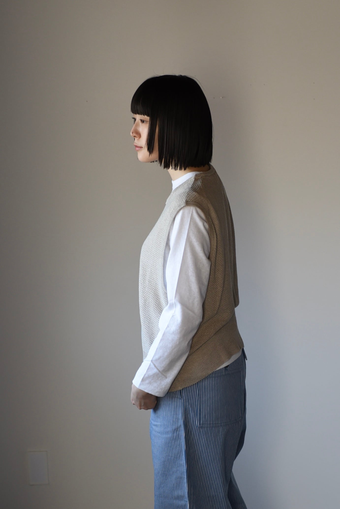 eleven 2nd|リネンシルク鹿子編みベスト|ベージュ