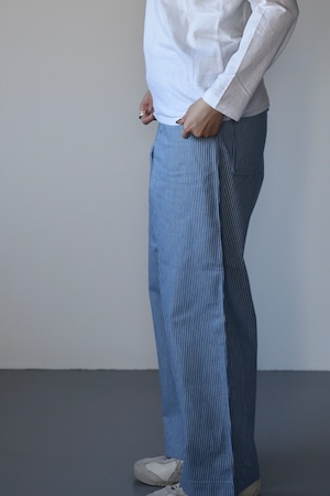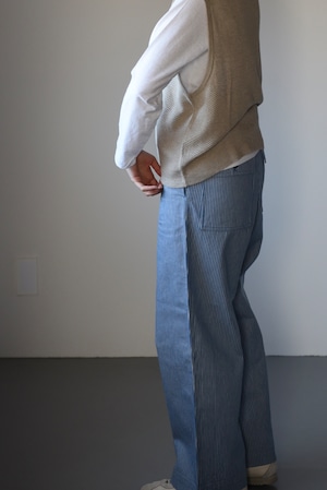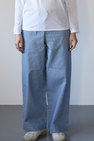 eleven 2nd|イレブンセカンド|コットンワイドパンツ|ブルー&ホワイト ストライプ