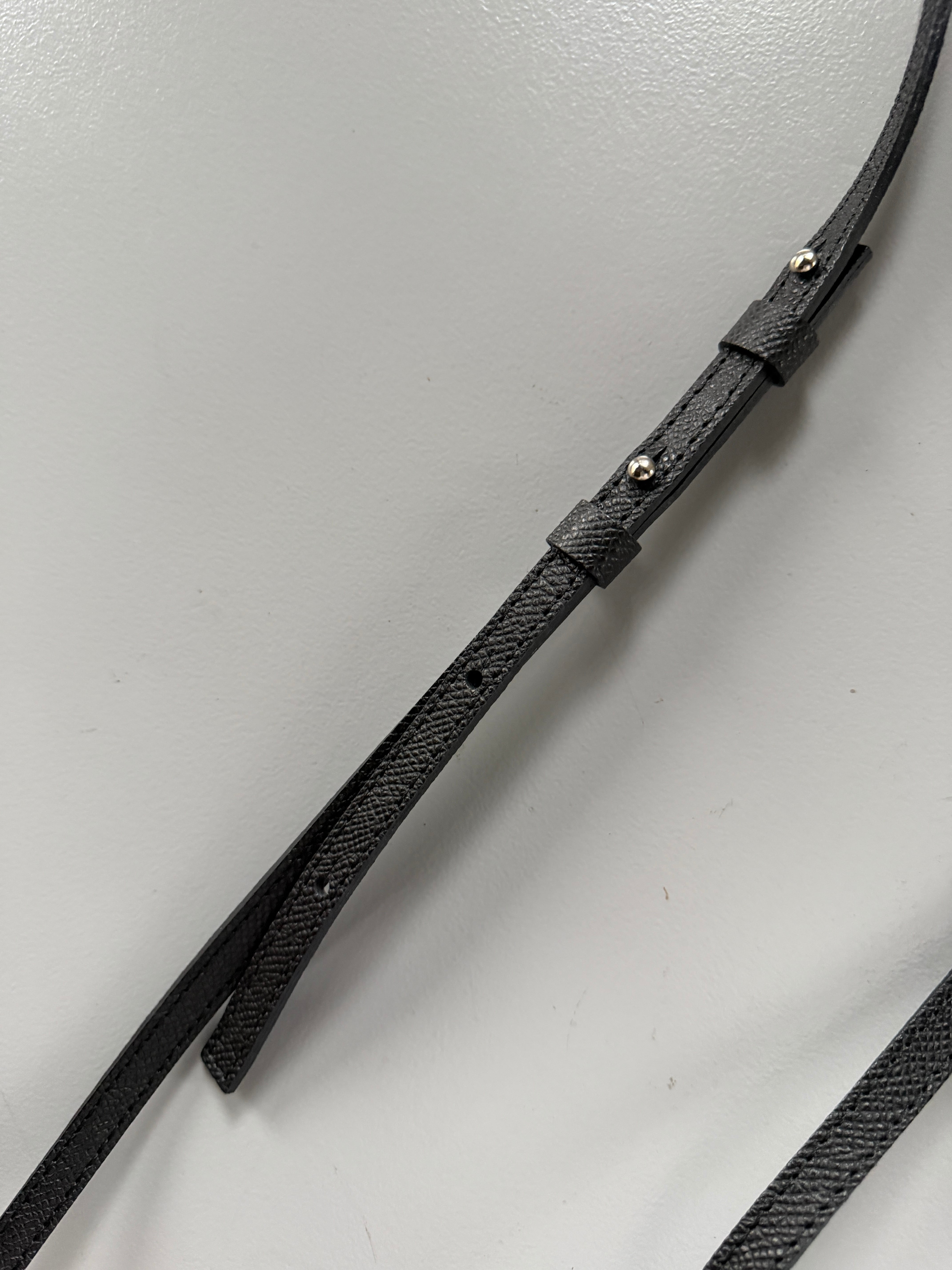 肩紐の長さは100-120㎝の間で調整していただけます(5㎝刻み)。斜めがけにしても十分な長さがあります。