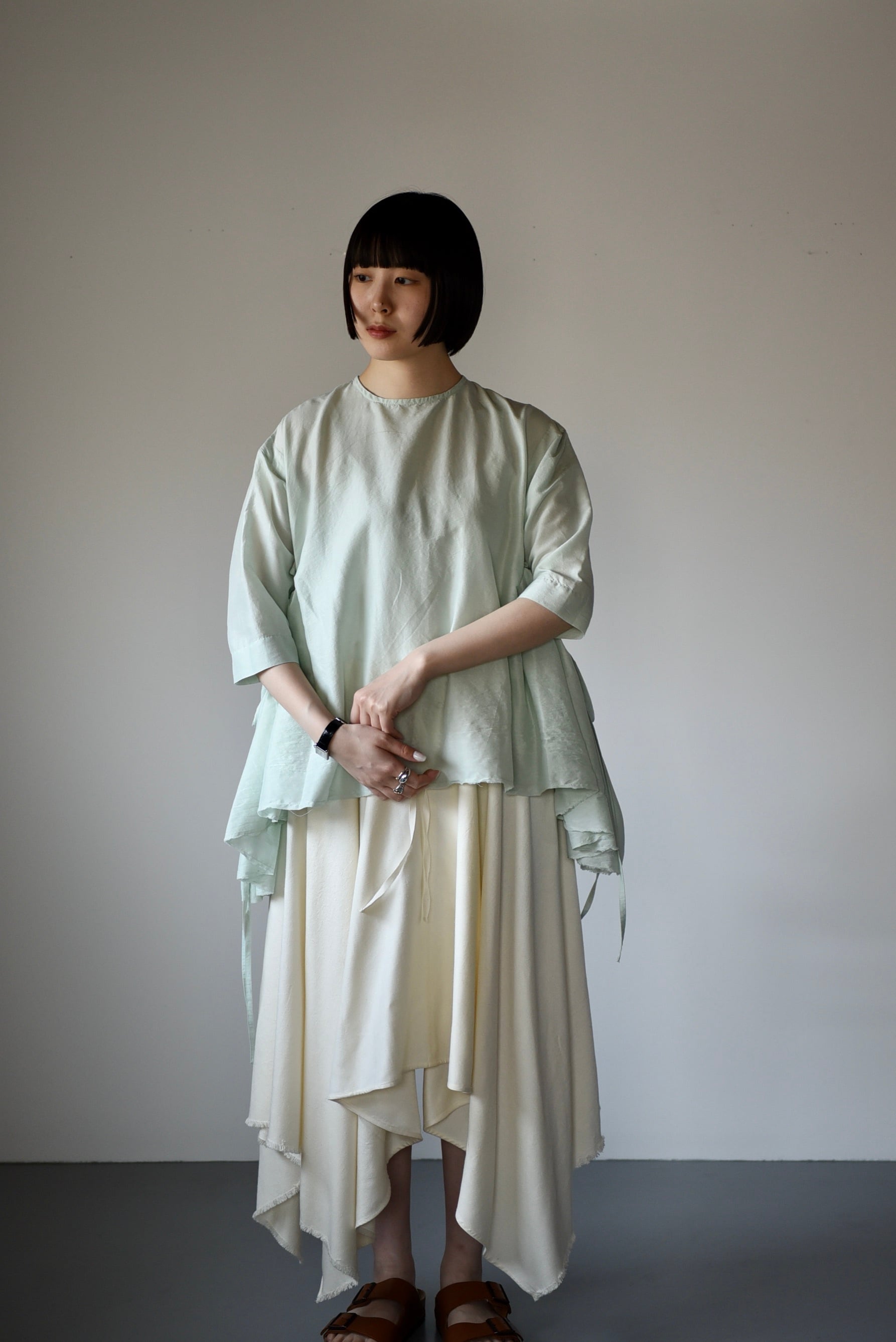 quitan |kadhiコットンシルク ギャザーブラウス 〈 DHANETAH JAT〉|ミント
