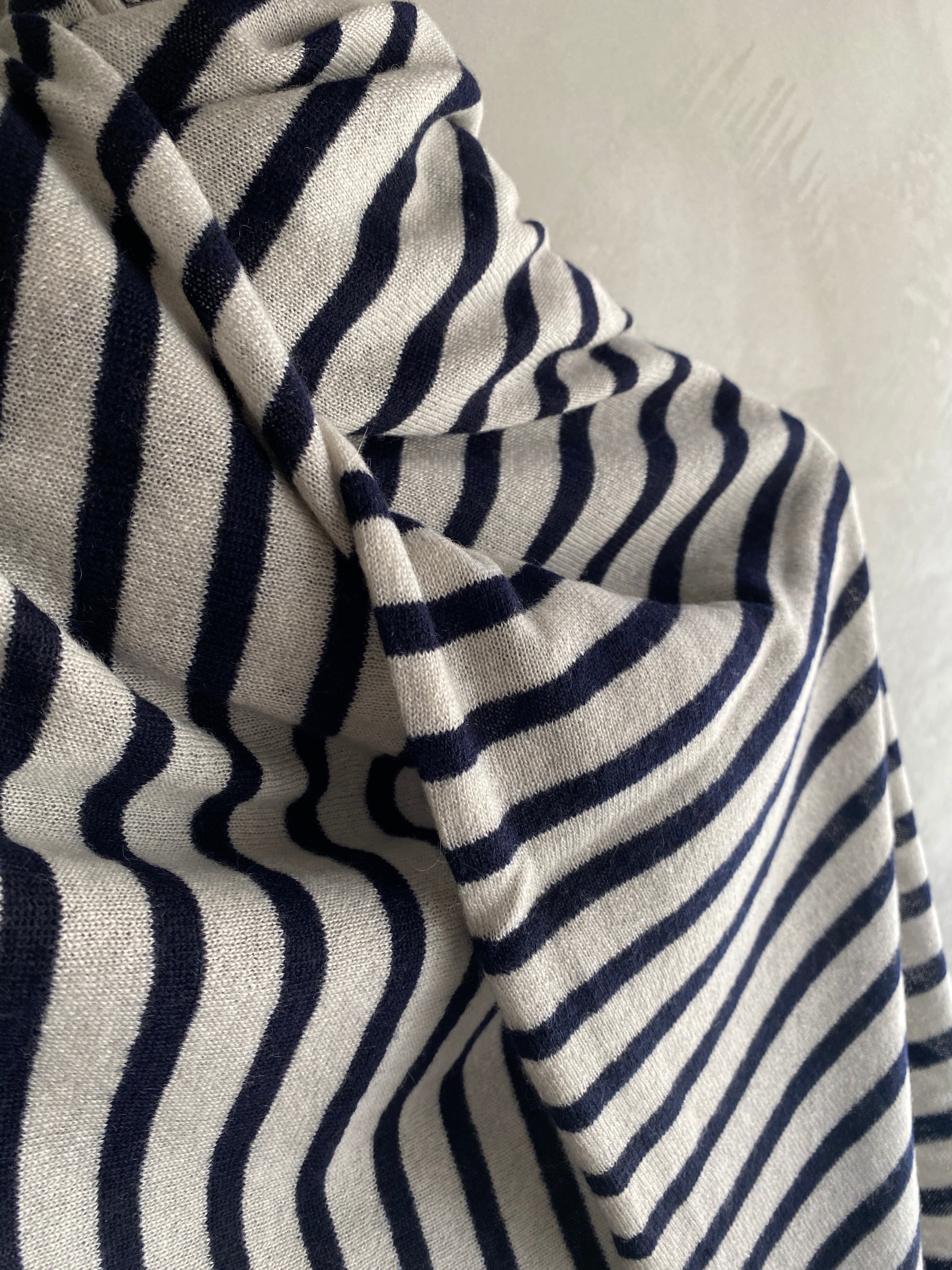 黒白のボーダー柄と思いきや、薄墨のようなホワイトスモークとネイビーのボーダー。