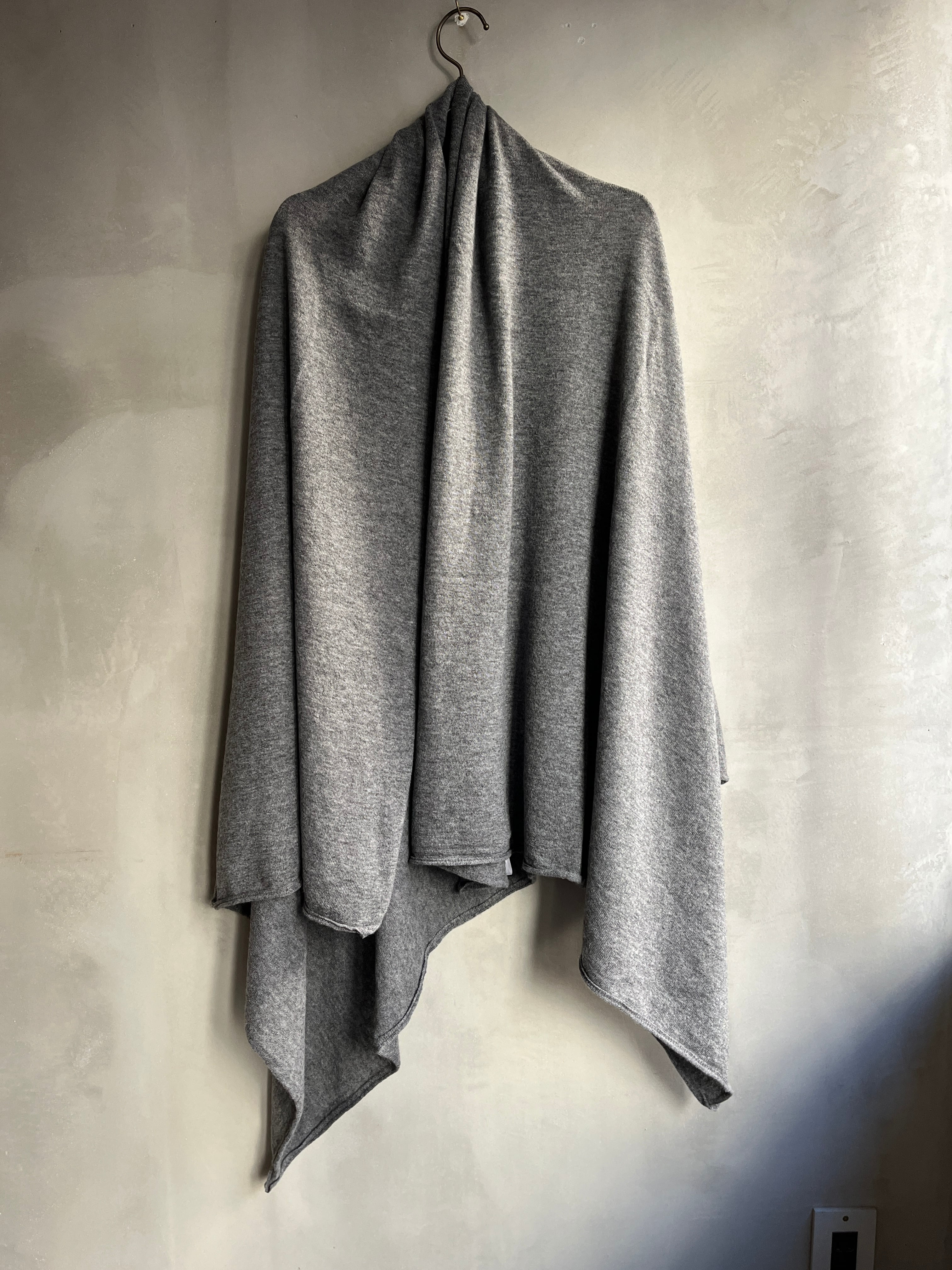 グレーの大判のストール。どのお色ともけんかしない、落ち着いた色です。